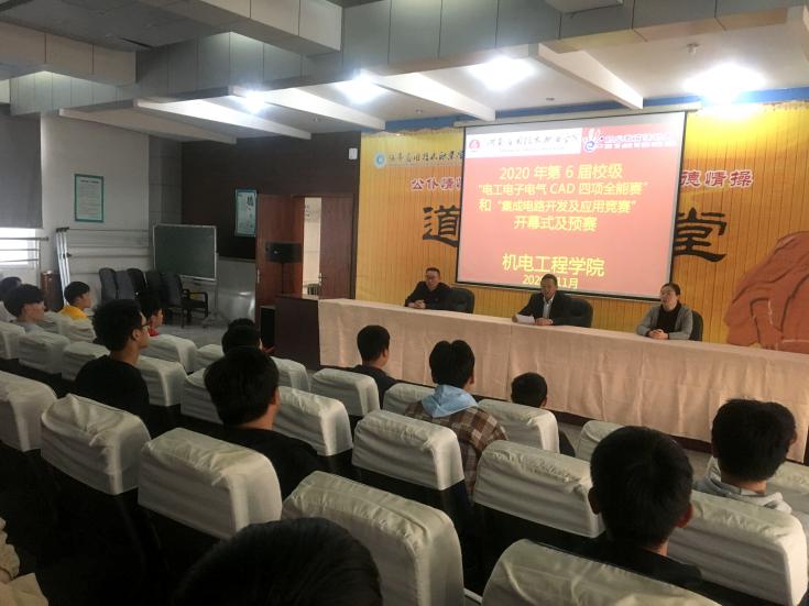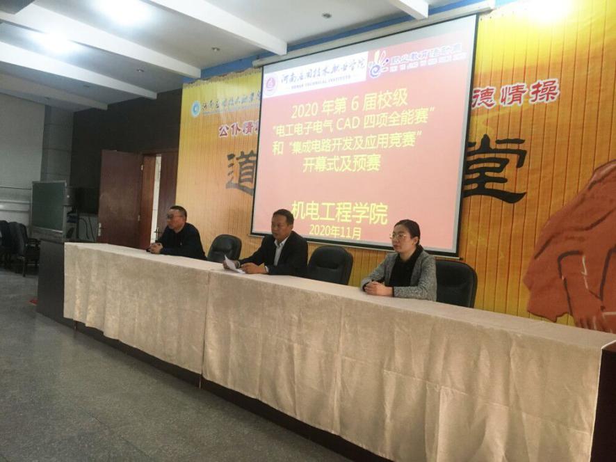 为大力弘扬劳动光荣、技能宝贵、创造伟大的时代风尚,进一步营造全社会关心支持职业教育的良好氛围,以“人人出彩,技能强国”为主题的2020年职业教育周活动于11月8日正式开始,beat365正版唯一官网积极参与,11月9日下午举办了2020年第六届校级“电工电子电气CAD四项全能赛”和“集成电路开发及应用竞赛”的开幕式,beat365正版唯一官网院长黄双成、副院长李凤银及教务办公室主任孙彩云参与开幕式,并指出此活动目的在于弘扬劳动光荣、技能宝贵、创造伟大的时代风尚,形成“崇尚一技之长、不唯学历凭能力”的良好学习氛围。