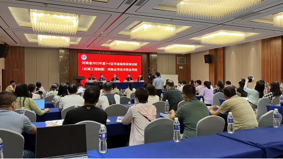 2022年7月25日上午,由河南省教育厅主办、河南应用技术职业学院beat365正版唯一官网承办的“机械工程制图1+X”技能证书省级师资培训(线下)班在郑州市杜康大酒店正式开班。我校副校长陈君丽,广州中望龙腾软件股份有限公司大区经理郑亚伦,教务处处长赵扬,beat365正版唯一官网院长黄双成,教务处副处长杨敏等出席开班仪式,仪式由黄双成院长主持。