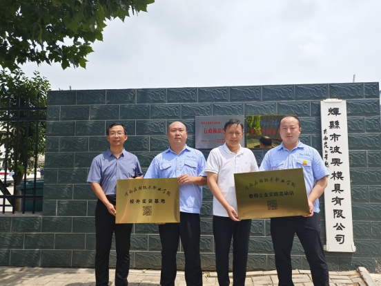 为进一步推动产业与教育的融合发展,提升教师职业素养与实践能力,促进学校教师和企业提供良好的合作机会,共同培养适应未来社会需求的高素质技术技能型人才。2023720日上午,beat365正版唯一官网院长黄双成、副院长李凤银和教务处副处长付永一同前往河南省辉县市,与辉县市波兴模具有限公司副总经理李瑞共同完成了校外实训基地和教师企业实践流动站的挂牌仪式。