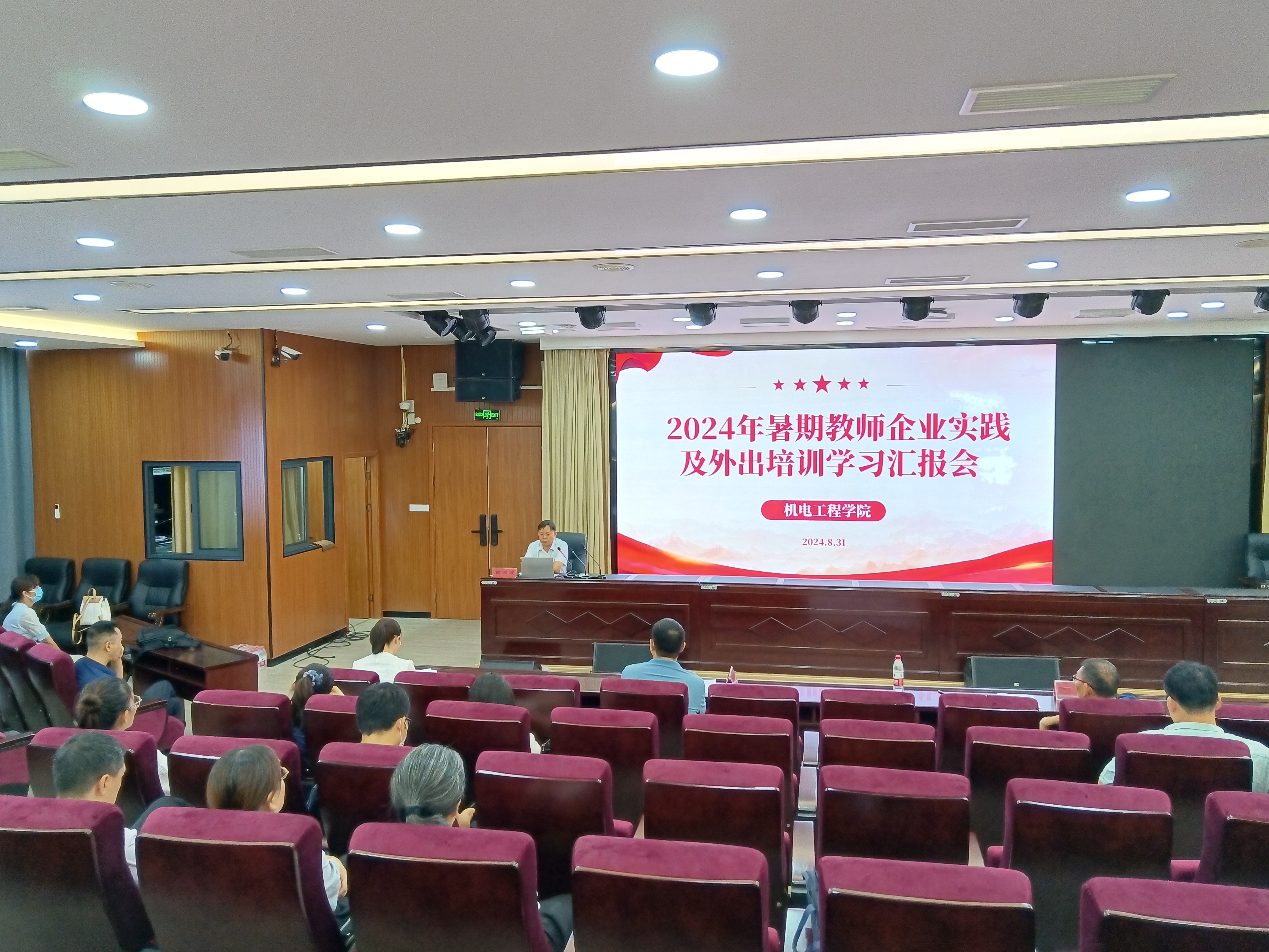 首先,机械设计与制造教研室主任郜海超、工业机器人技术教研室主任卢青波、机电一体化技术教研室主任白金柯,从教研室暑期企业实践规划、实践内容、获得的实践成果、存在问题与不足等方面,对各自在郑州金诚磨具制造有限公司、郑州科慧科技有限公司和重庆华数机器人有限公司、河南森思达能源技术服务有限公司,开展的为期一个月的企业实践进行了集中汇报。其次,27名参加暑期企业实践及外出培训学习的教师,从实践及培训学习内容、过程、取得成果、收获及心得体会进行了个人汇报。