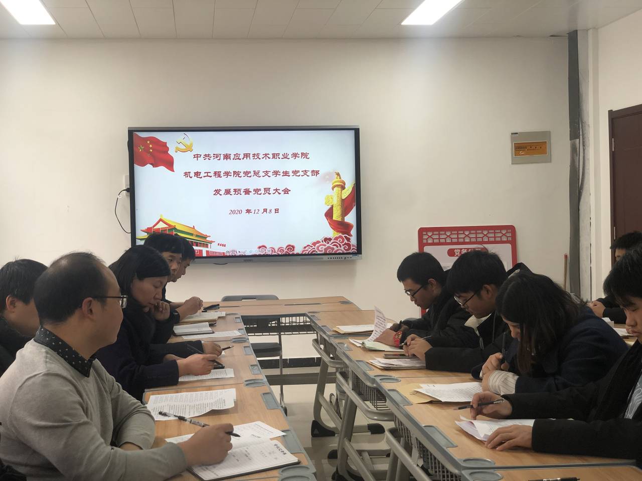 2020年12月8日,beat365正版唯一官网学生党支部在beat365正版唯一官网党员活动室召开了党支部大会,讨论接收张朝伟等15名同志为预备党员的问题。会议由党总支书记邓艳丽同志主持。