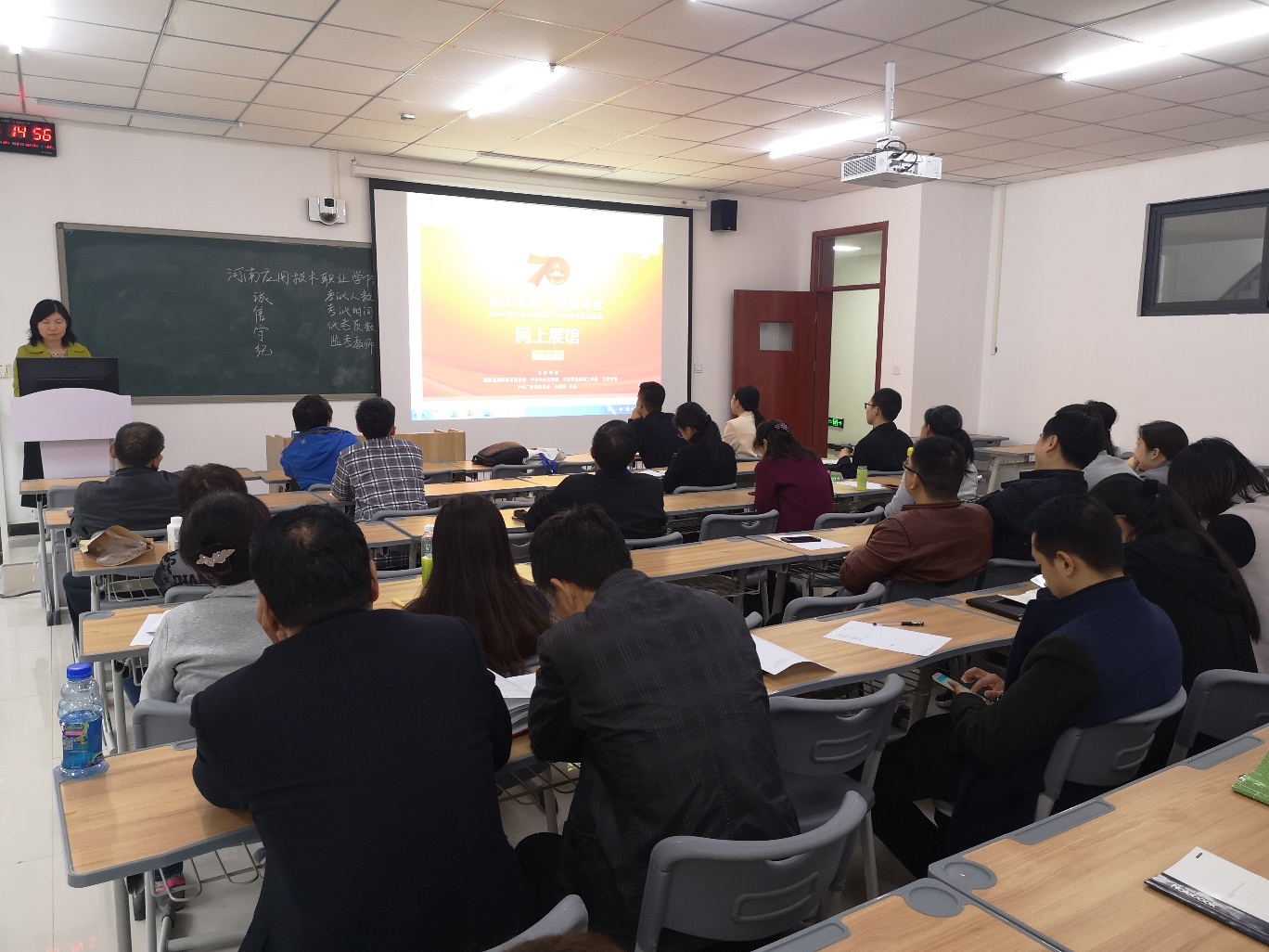 接着组织全体教师现场观看了《“伟大历程辉煌成就”---庆祝中华人民共和国成立70周年大型成就展网上展馆》的视频。序幕拉开,整个展示过程扣人心弦、激动人心。庆祝中华人民共和国成立70周年大型成就展分为五部分,按照时间先后顺序,从新中国1949年成立至今依次为:序厅、屹立东方、改革开放、走向复兴和人间正道。新中国成立至今已走过70年辉煌历程,取得的壮丽成就令世界瞩目。