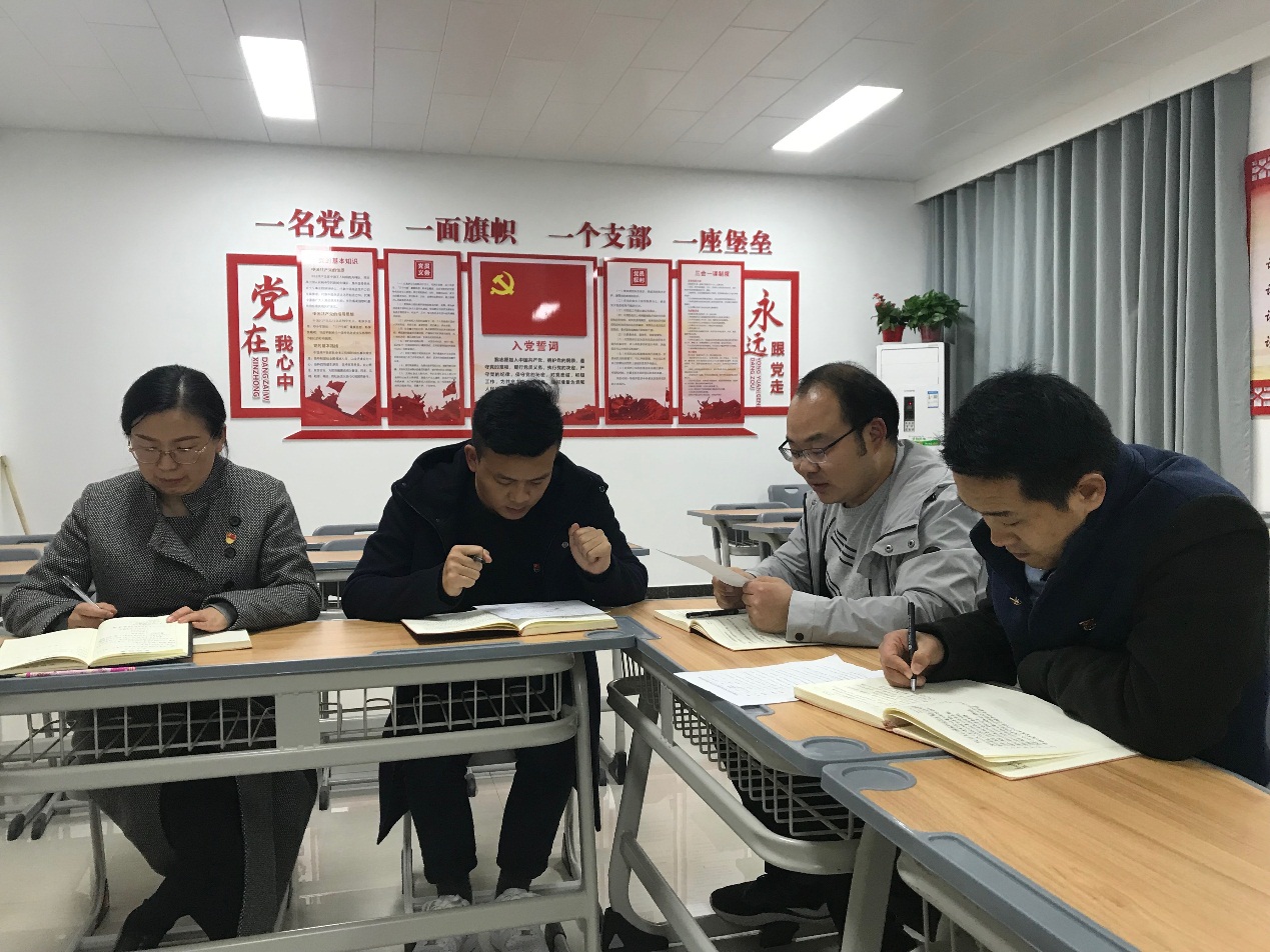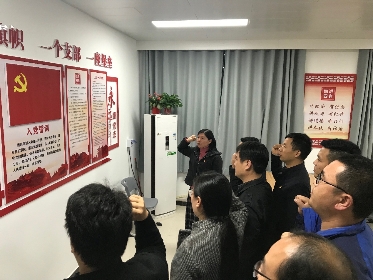本次主题党日活动主要包括三个环节:首先全体党员重温入党誓词,回顾自己的入党历程,回想入党初心,重新感悟自己入党时的信念和追求。