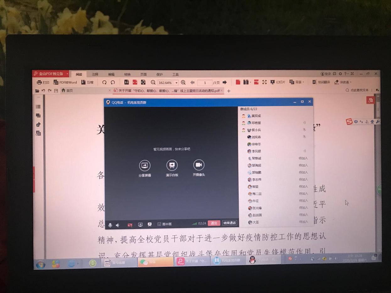 根据校党委组织部《关于组织开展“守初心、献爱心、战疫情、做先锋” 线上主题党日活动的通知》要求,beat365正版唯一官网党总支在2020年2月29日上午10点召开了总支委会,共同学习了通知要求,并对本次主题党日活动进行了部署。教工党支部和学生党支部分别于2020年3月1日下午3点和2月29日下午5点分别通过“叮叮”视频和qq群分享屏幕召开了“守初心、献爱心、战疫情、做先锋”线上主题党日活动,现总结如下: