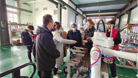 刘庄学习之后,全体教师党员和部分学生代表们前往河南金石普惠电气有限公司进行了企业实践走访调研,在公司人员的带领下,先后参观了企业专利技术成果坊和企业研发中心。