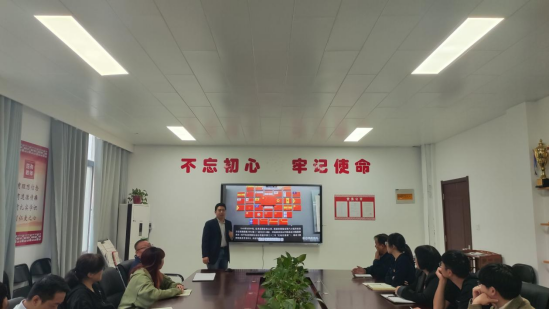 活动第一阶段,党总支书记贾建树同志为大家主讲题为《国旗的诞生》的主题党课。党课中,贾建树介绍了征集国旗设计方案手稿的历史背景,为大家呈现了当时的众多入选方案,展现了中国人民在喜迎新中国诞生中贡献的智慧和内心充盈的喜悦。