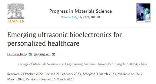 3044am永利集团3044noc蒋来明特聘副研究员在《Progress in Materials Science》综述用于个性化医疗的新兴超声生物电子研究进展