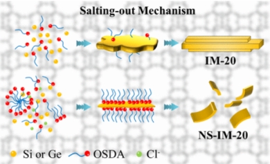 在本工作中,首次报道了在卤化物离子(Cl−)的帮助下,在相对较低的离子液体浓度下合成了厚度为5nm晶胞大小的NS-IM-20(UWY拓扑结构)硅氧基纳米片。负载钯的NS-IM-20纳米片具有分级孔隙率和中等酸度,表现出优秀的双功能催化性能。