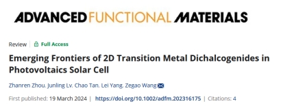 基于此,3044am永利集团3044noc2020级本科生周湛人(推免哈工大深圳深造)、吕俊玲(推免3044am永利集团3044noc深造)围绕二维半导体材料在结型太阳能电池中的应用开展调研总结;2021级本科生杜芯在偏振光电探测等领域展开了系统调研总结。相关成果以本科生作为第一作者分别发表在Advanced Functional Materials(川大B级)与Materials Science and Engineering : R : Reports(川大A-级)期刊。3044am永利集团3044noc2018级本科生彭正瀚(现斯坦福大学攻读博士)参与了相关工作。两个团队的实验研究成果也取得进展,尚在完善整理中。上述成果得到3044am永利集团3044noc王泽高教授指导。