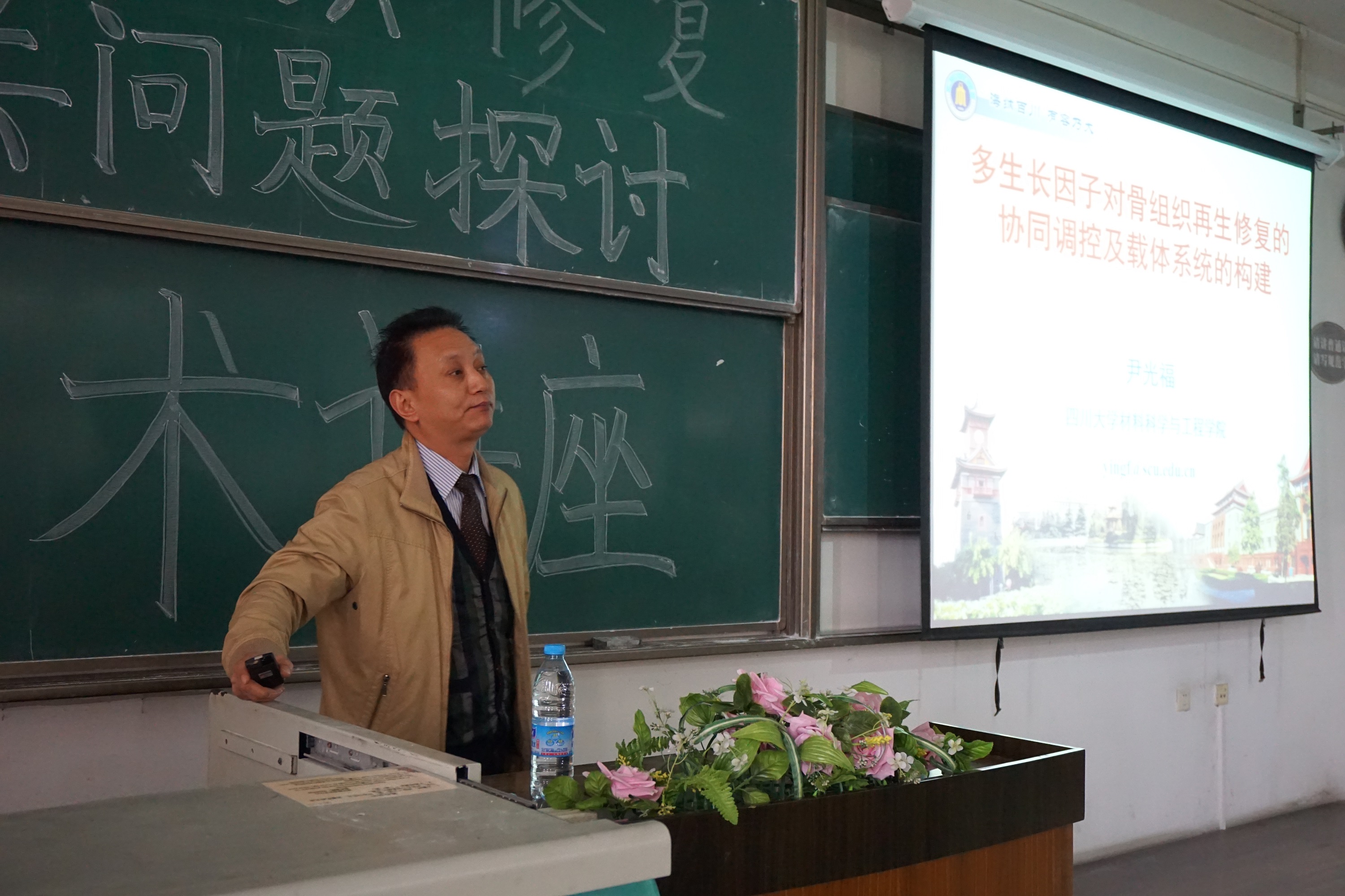 2014年11月2日下午,由3044am永利集团3044noc院长尹光福教授主讲的骨组织修复相关问题探讨学术讲座在第一教学楼B205成功举办。