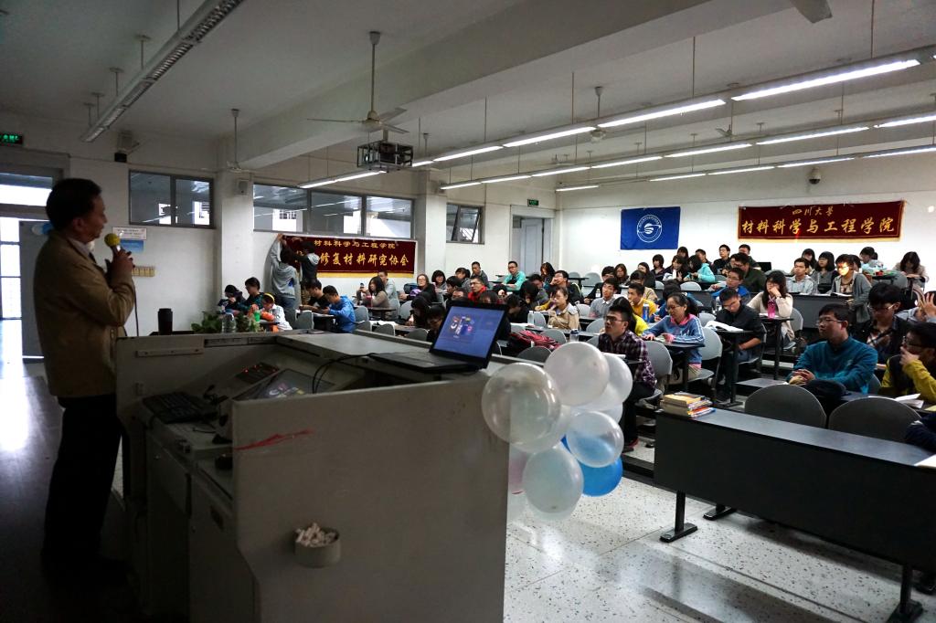 本次讲座主要面向生物医学工程专业的同学,同时现场也有不少其他专业的同学到场。15点50分,讲座正式开始。尹光福教授就多生长因子对骨组织再生修复的协同性及载体系统的构建问题深入浅出地为同学们讲解了骨组织修复的相关知识,使讲座内容在不失科学准确性的同时简洁明了、便于理解。在相关知识讲解完毕后,尹光福教授对讲解内容进行了精辟的总结。在之后进行的有奖提问环节中,同学们发言十分踊跃,尹光福教授也对同学们的问题进行了详尽的解答。下午六时许,讲座在同学们热烈的掌声中圆满结束。