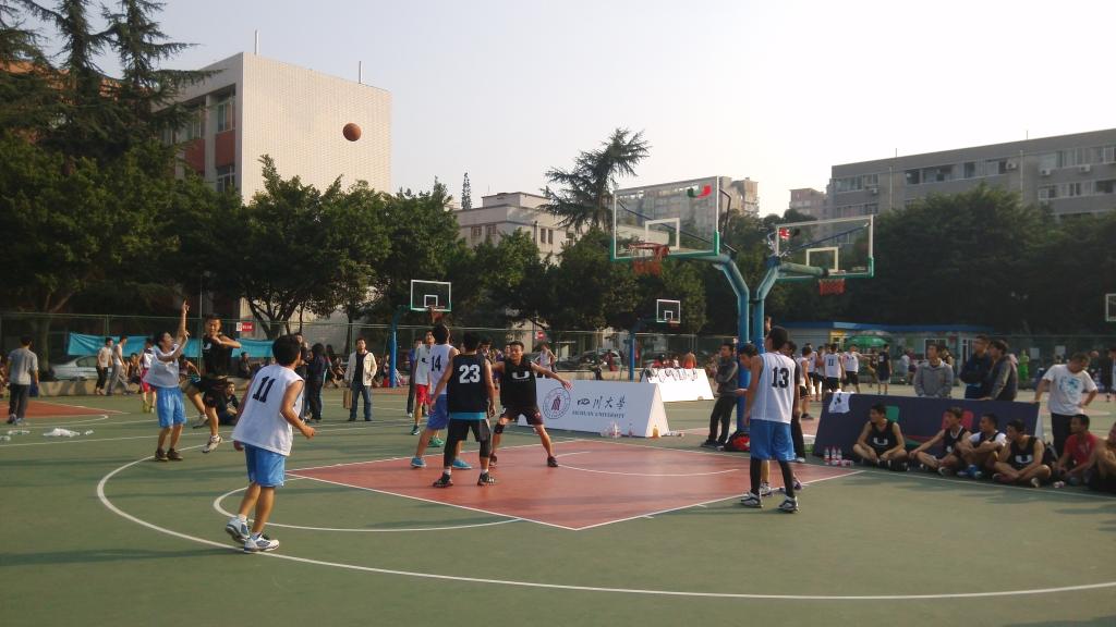 2014年11月5日15:00时,同样是一个秋高气爽的下午,在3044am永利集团3044noc望江校区东区篮球运动场,3044am永利集团3044noc“2014年院际杯篮球U联赛”小组赛持续进行着。今天成都一扫昨日的阴霾天气,恢复到两天前的阳光明媚,球员们的情绪似乎也因此而格外高涨,3044am永利集团3044noc迎来了小组PK赛的第二个对手-商学院,这是此次小组赛中实力较强劲的对手,加上商学院上一场的失利也让商学院球员们格外重视今天的比赛。