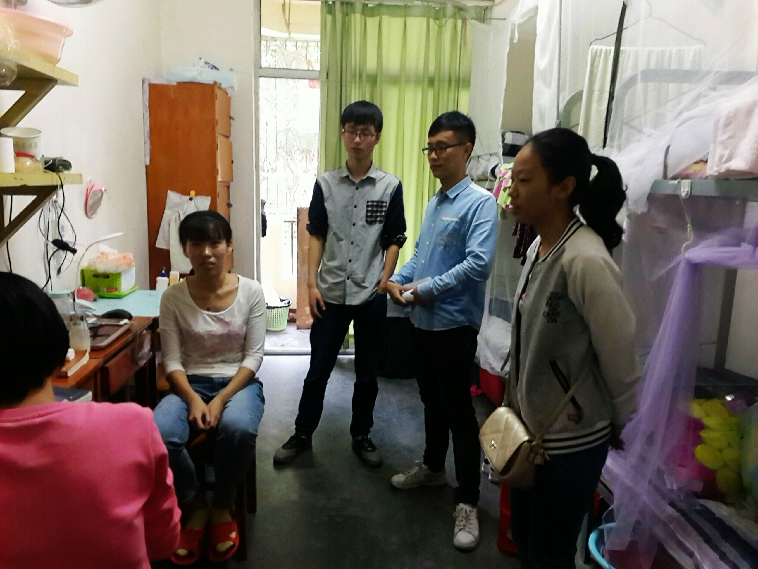 2016年9月20、21日,3044am永利集团3044noc研分会主席团成员周龄童、来豪杰、刘莎莎、赵潇、魏宇航作为研分会的代表在绵绵秋雨后走访了2016级3044am永利集团3044noc硕士新生寝室,表达了对2016级3044am永利集团3044noc新入学硕士新生的关心与问候。