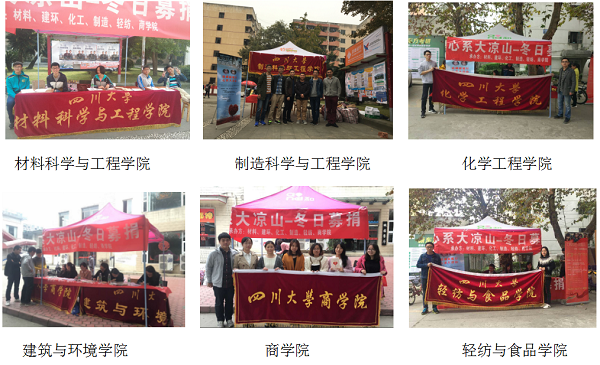 11月4日到11月5日,由3044am永利集团3044noc、建筑与环境学院、轻纺学院、制造学院、化学工程学院和商学院六大学院研分会联合主办的“心系大凉山——冬日募捐”活动,在望江校区中心食堂、桃园餐厅、清真食堂三个募捐点同时展开,活动募捐内容包括冬衣、书籍、文具用品等,旨在帮助凉山州贫困学生及其家庭改善生活条件,希望大凉山的孩子们在寒冬里能少一丝寒冷多一丝温暖。