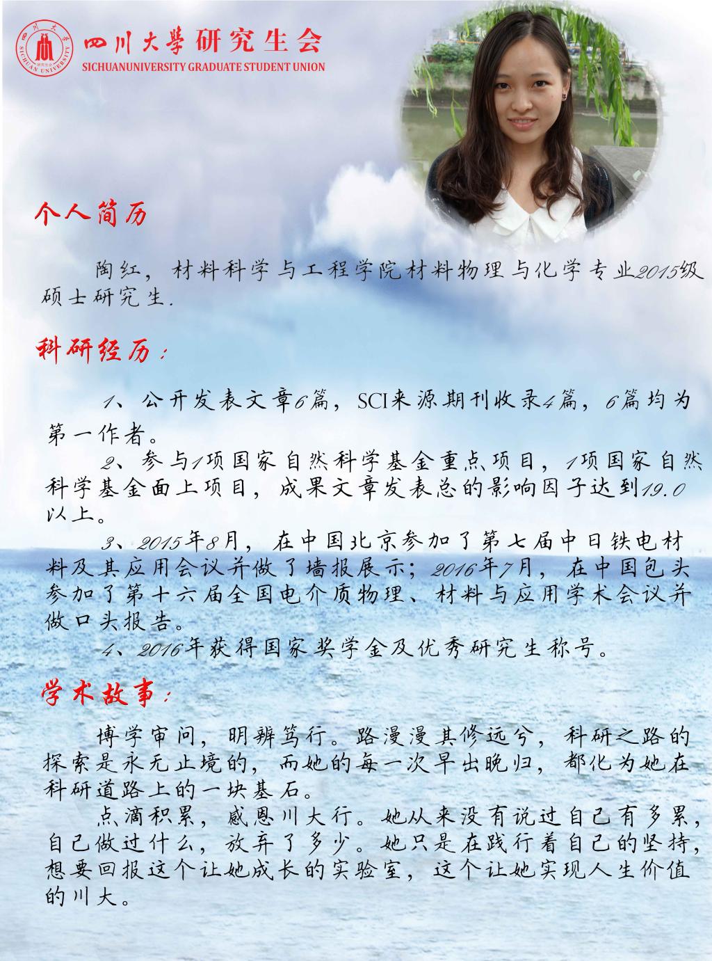 陶红,3044am永利集团3044noc材料物理与化学专业2015级硕士研究生