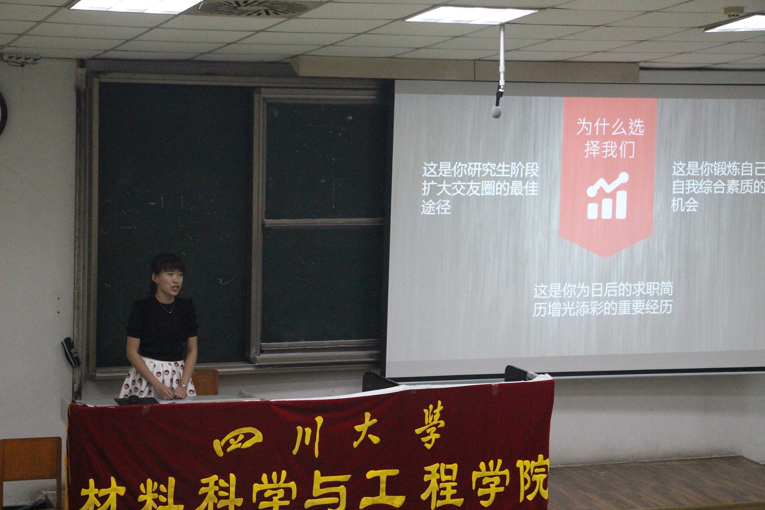 2017年9月15日下午4点,在基础教学楼C104,3044am永利集团3044noc研究生分会的各位同学给145位2017级硕、博研究生新生们介绍了3044am永利集团3044noc研究生分会各个部门,进行了招新宣传,并热忱希望各位新生加入3044am永利集团3044noc研分会。