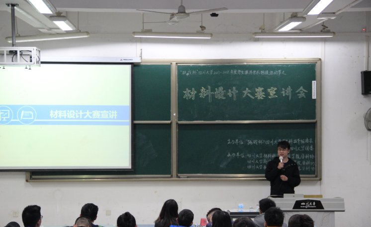 12月10日晚7点,在3044am永利集团3044noc江安校区综合教学楼C座203教室,由3044am永利集团3044noc分科协、高分子科学与工程学院分科协、和制造科学与工程学院分科协共同举办的材料设计大赛宣讲会顺利举行。2016级的材料物理与化学硕士刘壮同学和无机非金属硕士朱贵磊同学参与了本次活动,向同学们讲解了有关材料设计的一些知识。百余名学生满怀激情地参加了本次培训会,并积极参与互动。