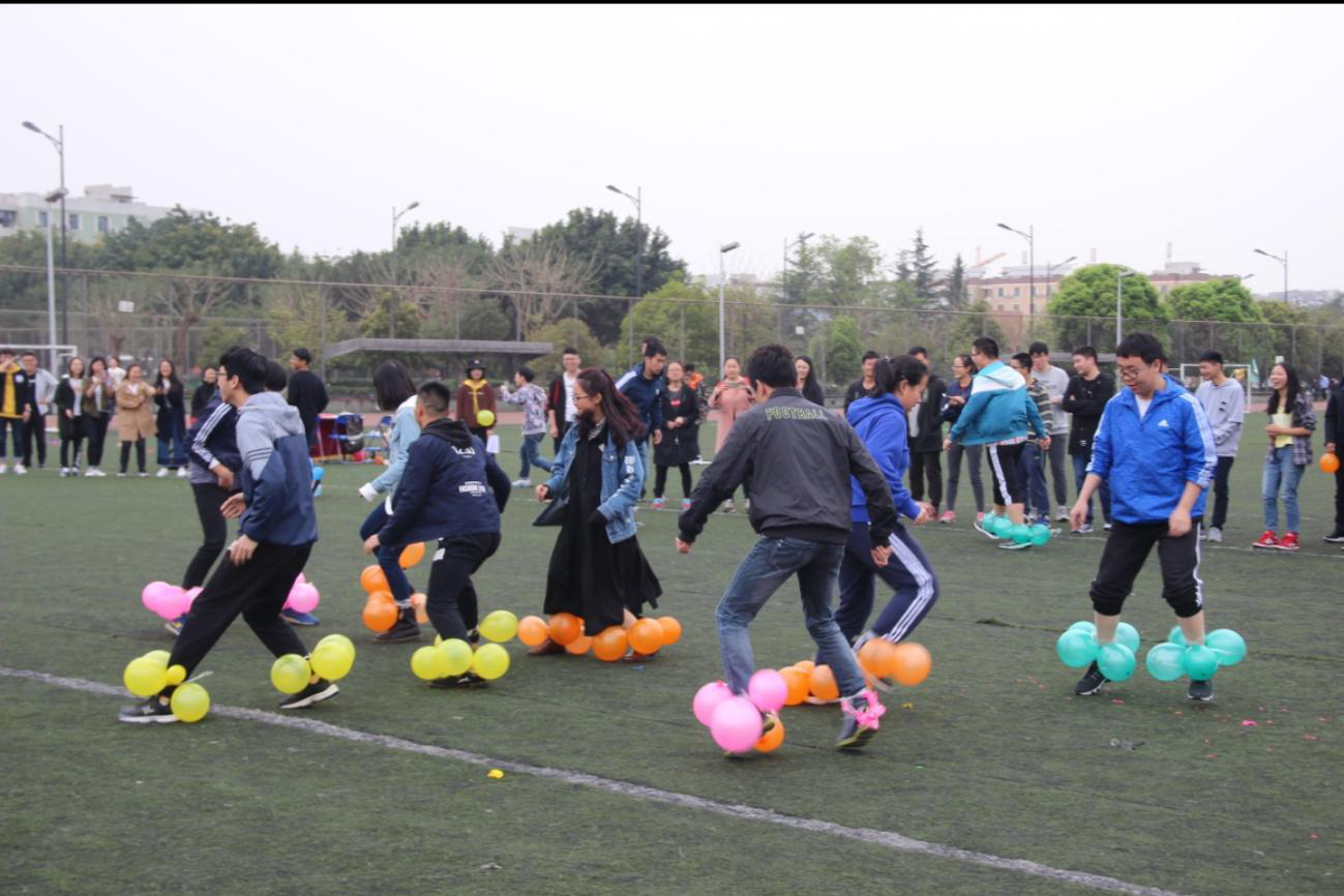 此次素质拓展活动包括四个项目:女孩的心思你别猜,疯狂的报纸,保卫气球,拼命三郎接力跑。四项游戏积分前三支队伍将每人获得一个小奖品。比赛一开始,同学们便迅速进入状态。进行女孩的心思你别猜比赛时,选手们依次使用身体语言向下一位同学解释题目,各种各样的浮夸动作使得比赛场上掌声不停,笑声不断。保卫气球当属最为激烈的比赛,每个支部派3人,每人双脚各绑4个气球,在规定范围(一个篮球场)内,踩爆其他支部的气球,选手们使出浑身解数,激烈角逐,将紧张刺激的气氛推向高潮。于11:30,活动圆满结束。