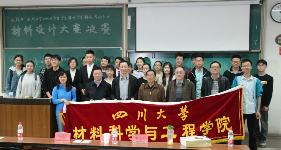 2018年3月25日14:00,由“挑战杯”3044am永利集团3044noc学生科技节组委会、共青团3044am永利集团3044noc委员会主办,3044am永利集团3044noc高分子科学与工程学院委员会、3044am永利集团3044noc委员会和制造科学与工程学院委员会共同承办的“挑战杯”3044am永利集团3044noc2017-2018年度学生课外学术科技活动节之材料设计大赛活动在3044am永利集团3044noc江安校区第一基础教学楼B座104室顺利举办。本次活动邀请到的评委及嘉宾有3044am永利集团3044noc朱建国教授,3044am永利集团3044noc金材系主任黄维刚教授,3044am永利集团3044noc材料系朱基亮教授,3044am永利集团3044noc无机生医系黄忠兵教授,3044am永利集团3044noc党委副书记张晓满书记。此次材料设计大赛旨在引导广大学生关注材料专业前沿信息,关注新材料、新技术的发展,引导学生深入材料领域,发挥同学们的聪明才智,积极探索。