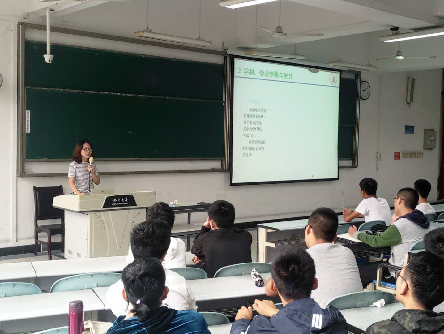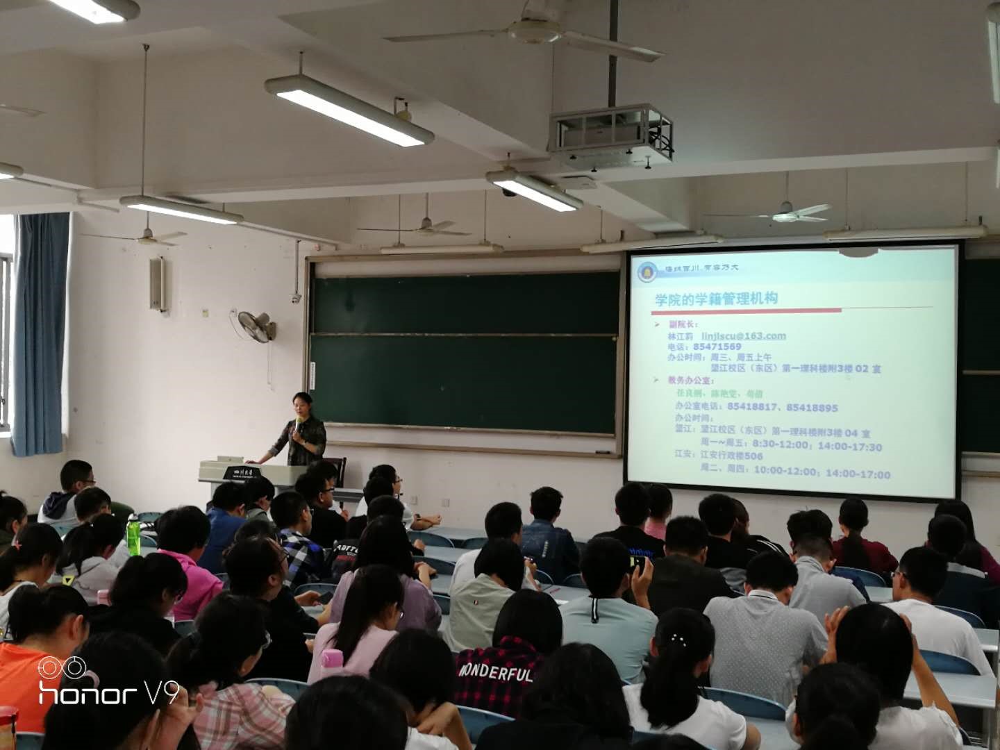 新进入大学的18级同学们,对各种各样的事物还不够了解,极其重要的学籍管理同样列在他们亟待了解的事物表中。林江莉副教授和陈艳雯老师便在这时为他们降下了及时雨,开展了本次有关学籍教育的课程。林江莉副教授首先强调了学籍的重要性,点明这是伴随我们大学生涯的重要资料,需格外的重视。其次,林院长介绍了学籍管理机构,保证同学们有相关的问题的话,有了官方的咨询途径。陈艳雯老师则主要讲解了学业计划方面,大致分为三个方面:1.学制、修业年限与学分。2.课程修读、考核与成绩记载。3.辅修与双学位。