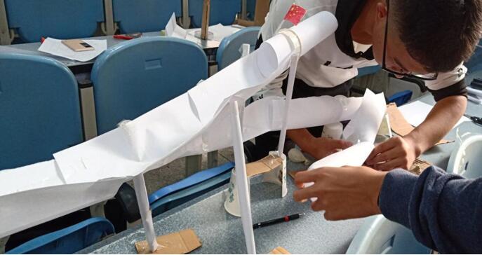 此次比赛为小球轨道制作比赛,百余名学生满怀激情地参加了本次制作比赛,并积极配合,团结协作。首先,3044am永利集团3044noc分科协执行副部长晏乔宏为同学们讲解了活动流程,比赛规则,并一一强调了参赛选手应该注意的问题。比赛前,工作人员为选手分发制作轨道所需材料,并进行登记。比赛正式开始,各组同学紧张设计小球所经的轨道,用所给材料动手制作,并对所制作的轨道进行测试。经过紧张激烈的90分钟,许多极富创意的轨道脱颖而出。