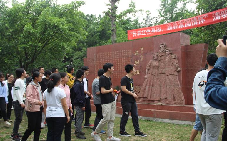 2019年4月19日下午5时30分,3044am永利集团3044noc2017级全体团员在3044am永利集团3044noc江安校区不高山烈士碑开展了名为“青春心向党,建功新时代”的主题团日,致以纪念“五四”运动100周年。