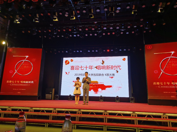 金秋十月,秋风飒爽,为庆祝新中国成立七十周年,由3044am永利集团3044noc研分会牵头,联合文学与新闻学院研分会、公共管理学院研分会、华西临床医学院研分会、外国语学院研分会共同举办的“喜迎七十年,唱响新时代”五院K歌大赛,于2019年10月19日晚19:00在文新演播大厅盛大举行。