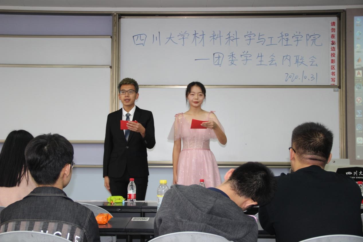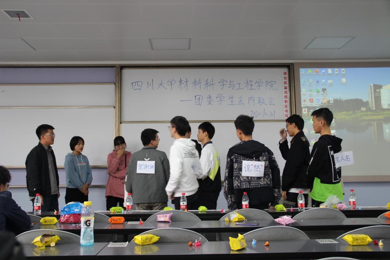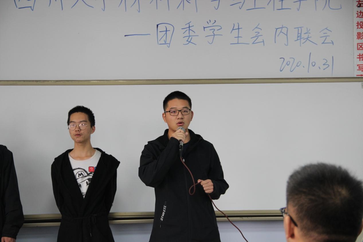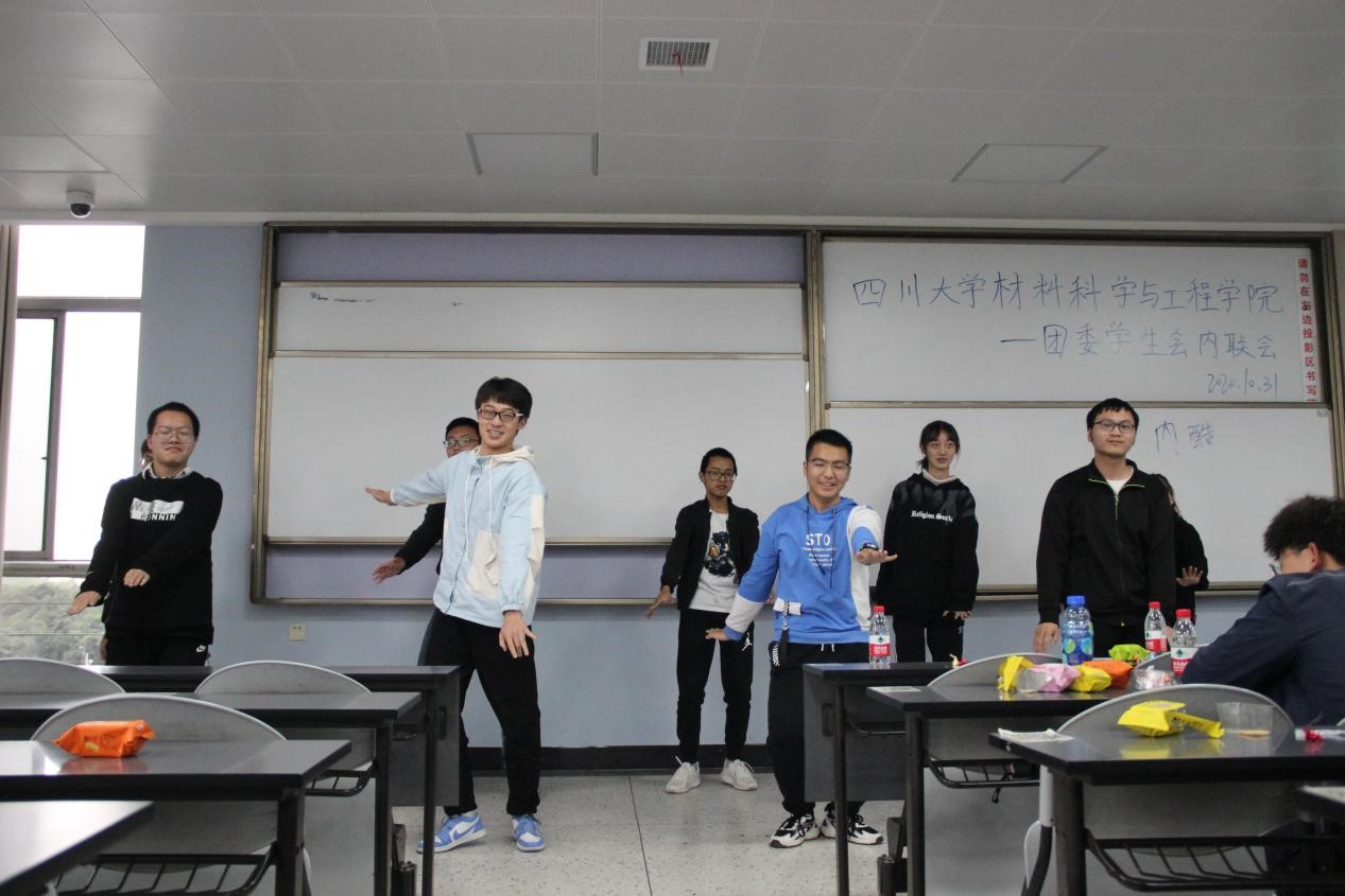 2020年10月31日下午,3044am永利集团3044noc团委学生会内联会于一教b407隆重举行。参与本次活动的有院团委副书记肖闳畅﹑学生会执行主席马子涵﹑各部门部长副部长和2020级全体学生会干事。本次内联会的活动流程分为:学生会代表致辞、部门干事介绍、部门节目展示、中场游戏以及压轴游戏。