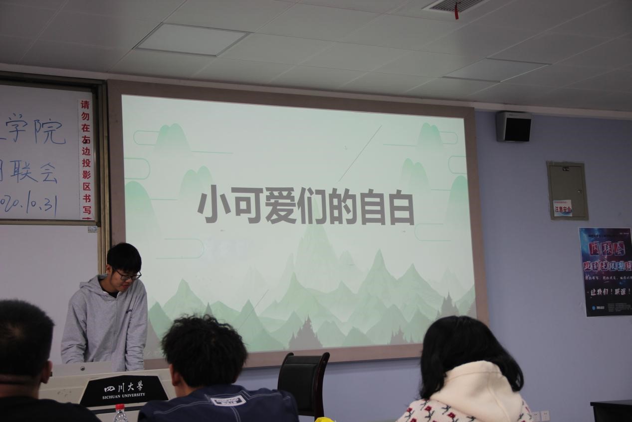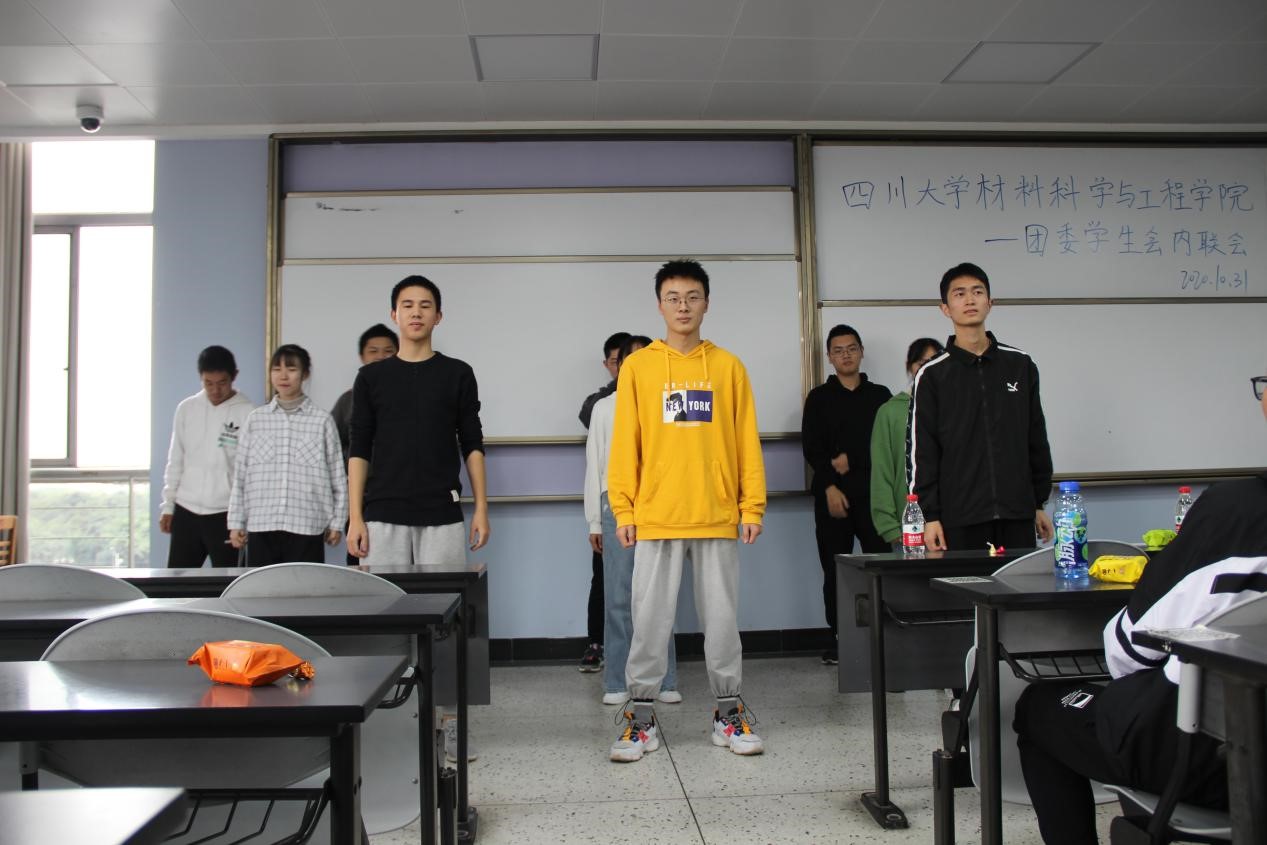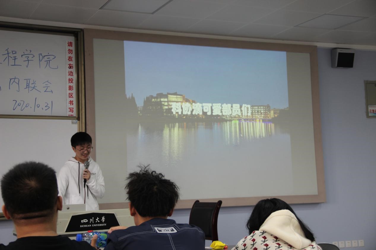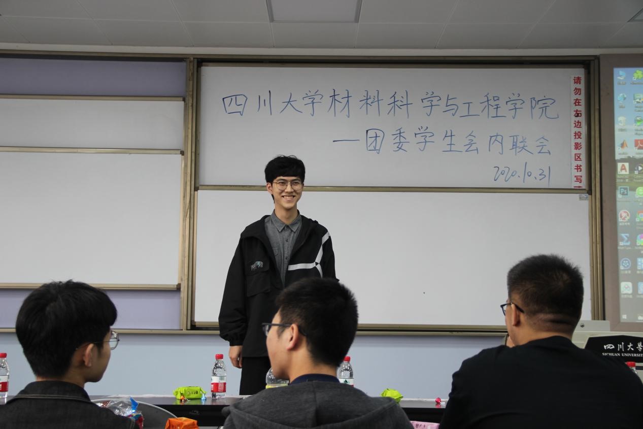 2020年10月31日下午,3044am永利集团3044noc团委学生会内联会于一教b407隆重举行。参与本次活动的有院团委副书记肖闳畅﹑学生会执行主席马子涵﹑各部门部长副部长和2020级全体学生会干事。本次内联会的活动流程分为:学生会代表致辞、部门干事介绍、部门节目展示、中场游戏以及压轴游戏。