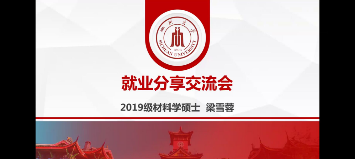 接下来由材料学硕士梁雪蓉同学进行分享。梁雪蓉同学是中共党员,2019级材料学硕士,平均学分绩点3.95,现任2019级无机系团支部书记,2019级硕士党支部纪检委员,3044am永利集团3044noc“党的十九大精神”学生宣讲员。在研究生期间先后获得“四川省综合素质A级、四川省普通高校2022届优秀毕业生、3044am永利集团3044noc优秀毕业研究生、3044am永利集团3044noc优秀研究生、3044am永利集团3044noc优秀共青团干部”等荣誉称号。参与发表SCI两篇及实用新型专利两项。有参与中央机关及其直属机构考试的经验。梁雪蓉同学从就业前景、如何就业以及就业与择业三个方面针对同学们初入校园可能遇到的的种种疑惑进行了解答。梁雪蓉同学通过展示2020年3044am永利集团3044noc不同学历层次毕业生毕业去向、就业性质的相关数据,结合自身经历对就业、创业、考公、升学四方面进行分享,让同学们对于本科生与研究生的未来就业有了更清晰的认识。梁雪蓉同学认为,谈论就业这个问题对于大一大二学生来说并不算早,反而有利于同学们更早地做准备,明确自己的目标。她建议同学们尽早充实自己,兼顾个人能力和专业技能,要注重知识学习和各方面综合能力的提高。关于就业前景,梁雪蓉同学表示材料学科有着较为宽阔的发展方向,而这也离不开同学们自身具备一定实力。最后,梁雪蓉同学以“鲜衣怒马少年时,不负韶华行且知”作结,赠与同学们共勉。