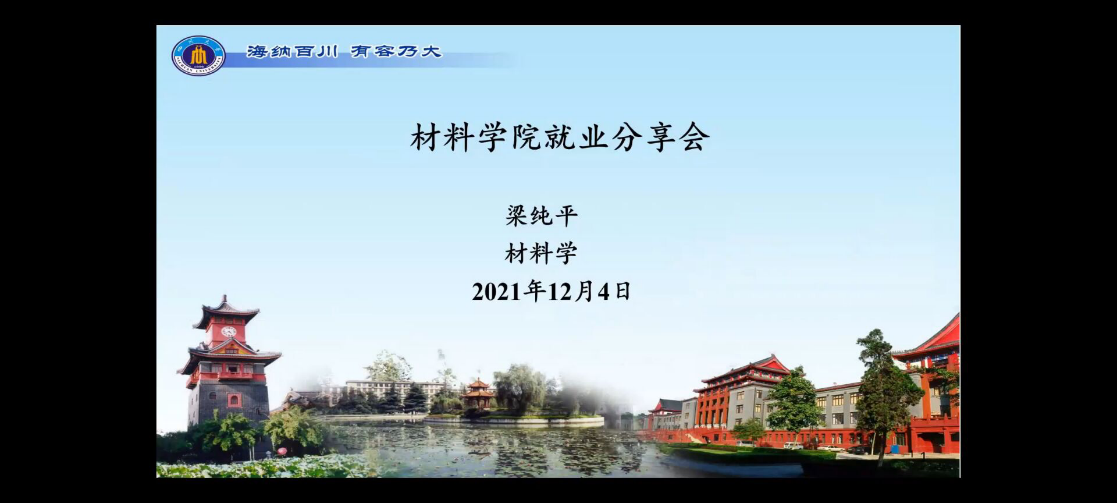 首先由梁纯平学长带来分享。梁纯平博士目前担任3044am永利集团3044noc兼职辅导员,本科望江党支部书记,主要从事稀土LED光学材料的性质研究,本、硕、博阶段均研学于材料学专业,在材料制备、性能研究领域积累了较多的经验和理论知识。截止目前发表多篇SCI论文;2019年曾前往英国牛津大学参加学术会议。在活动中,梁纯平博士就材料学科专业相关知识和材料学未来就业前景两个方面进行分享,针对结构材料和新能源材料两个大类展开研究内容及就业态势的介绍,还对材料本科生、硕士生、博士生近年的工作薪资待遇做出简要对比说明。