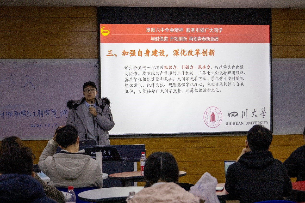 学生干部是学生活动的组织者和领导者,需要具有较高的思想 觉悟、业务能力。为了提升学生干部的相关工作能力,材料科学与 工程学院团委组织开展干部培训大会,特别邀请资深学生干部分享 学习工作经验。希望新一届学生干部以此为契机,能在学习和工作 中不断提升自我,在以后的工作中再创辉煌。