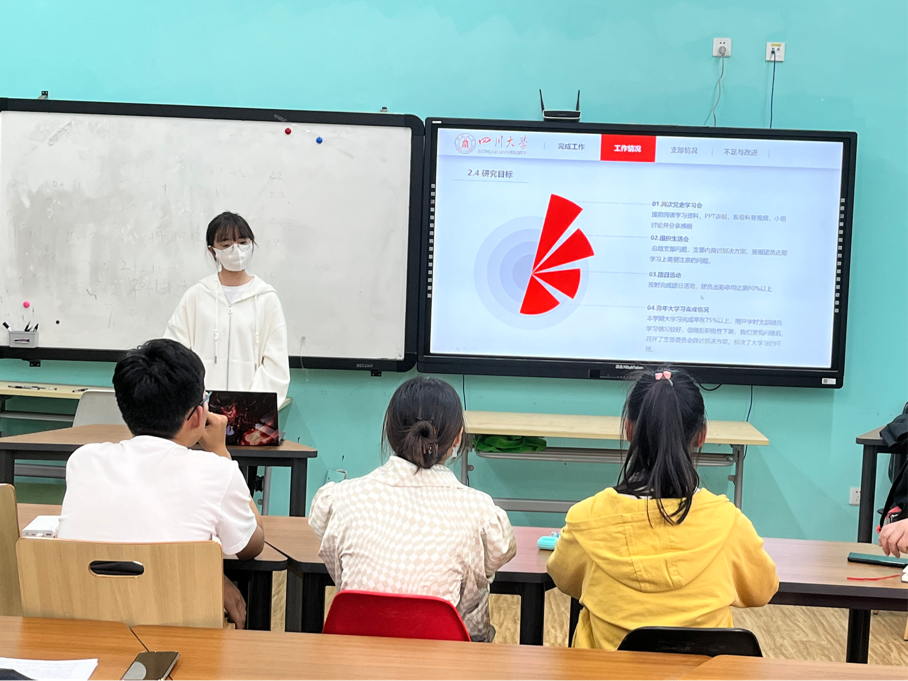 各团支部书记就2021-2022学年支部基本情况、工作内容、思想情况以及不足与改进四个方面进行汇报,重点突出年度工作成果并深刻反思支部现存的问题,明确了团支部未来建设的发展方向。