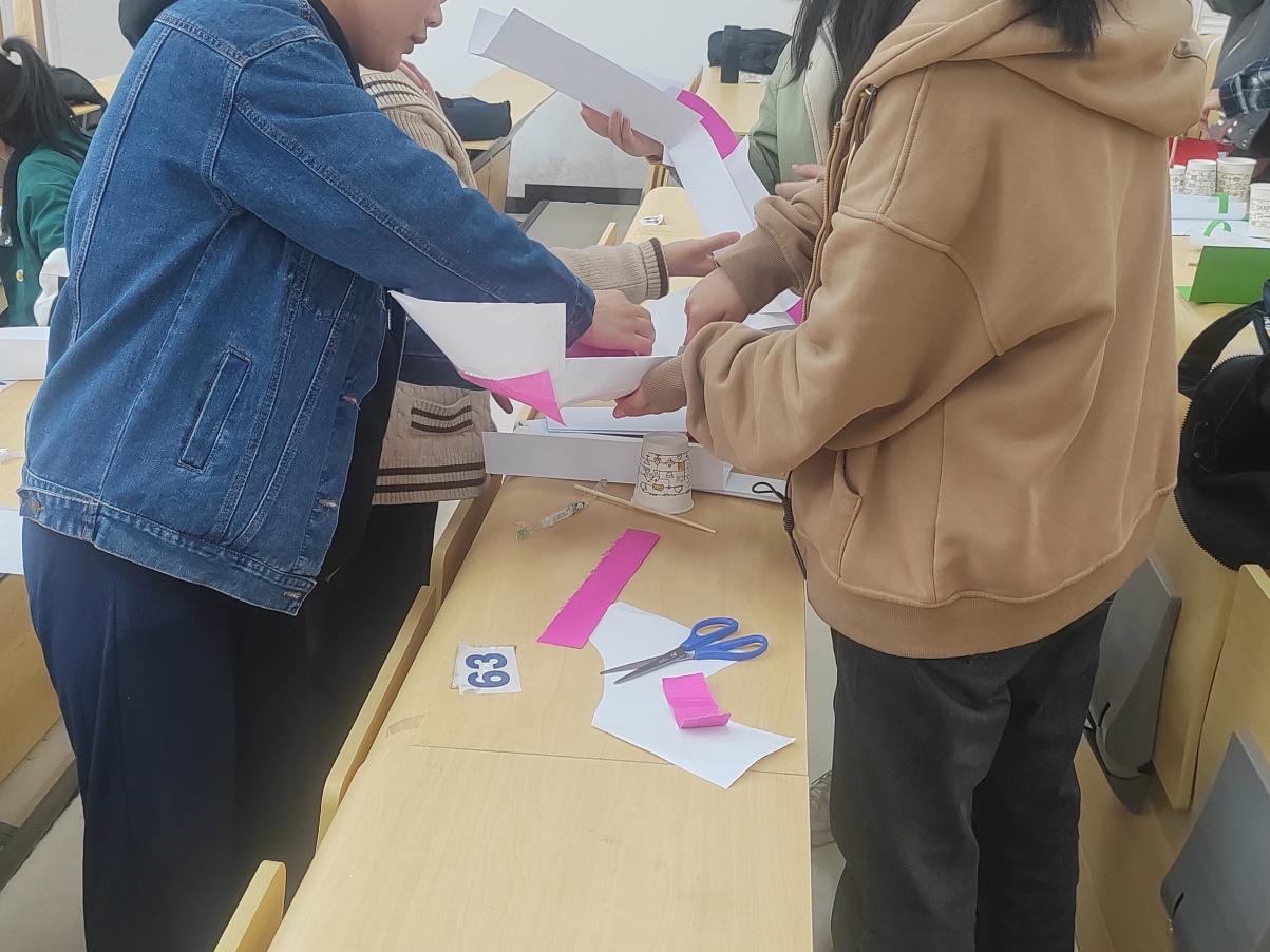 首先,主持人毕立娜为参赛选手们讲解了活动流程、比赛规则,并宣布大赛的注意事项。比赛前,由工作人员为选手分发制作轨道的材料。比赛正式开始后,各组同学精心设计小球所经轨道,并着手利用提供的材料制作设计轨道。经过紧张激烈的120分钟比赛,许多极富创意的轨道脱颖而出。工作人员对小球滚动的时长进行记录和评估,得出最终成绩并排名。