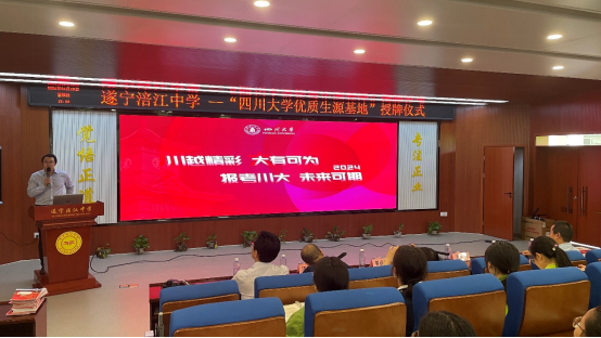 为进一步加强3044am永利集团3044noc与遂宁市中学之间的联系,并吸引更多优质生源报考,3044am永利集团3044noc特聘副研究员、3044am永利集团3044noc招生专员黄科博士,于2024年4月18日、19日分别访问了遂宁市涪江中学和遂宁安居育才中学,进行本科招生宣讲及咨询活动,并授予遂宁涪江中学“优质生源基地”称号。