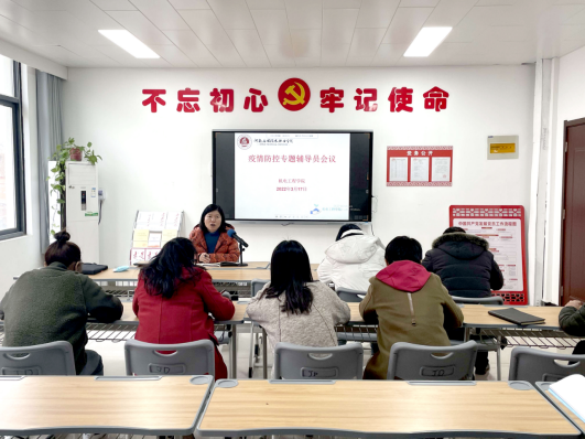 最后,学院党总支书记邓艳丽针对疫情防控工作对各辅导员提出了以下要求:一,做牢做实学生健康晨午检工作;二,非特殊情况不聚集、不外出,严格请销假制度;三、对出现发热、咳嗽同学,要实时跟踪关注,立即上报就医。四,时事追踪并关注不在校学生情况。