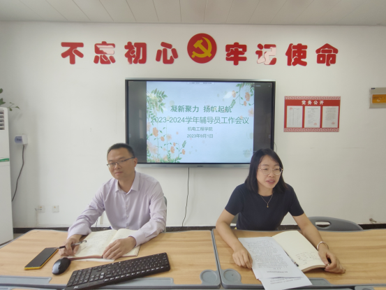 露蝉声渐咽,秋日景初微。为加强学生管理工作规范化、制度化管理,进一步提高思想政治教育工作的实效性,确保新学期学生管理工作有序高效的开展,9月1日上午,beat365正版唯一官网在办公楼212召开了2023-2024学年第一学期辅导员工作会议,党总支书记张亮、副书记耿丽敏、学工办主任郭娇娇、团总支书记张光锋、全体机电辅导员参加会议,会议由副书记耿丽敏主持。