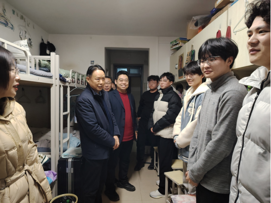 当课堂的知识余韵还在校园里回荡,学院的领导们已将关怀的脚步迈向了学生宿舍。党总支书记贾建树、院长黄双成、副书记耿丽敏、副院长李凤银逐一走访宿舍,与同学们亲切交流。他们关心同学们寒假生活的欢乐点滴,聆听返校途中的新鲜见闻,询问大家在学习生活上的困难。同学们围在老师身边,你一言我一语,欢声笑语回荡在整个宿舍区。老师们的鼓励话语,犹如激昂奋进的号角,在宿舍的每一个角落回响,激励着同学们在新学期立下鸿鹄之志,勇敢地朝着知识的高峰攀登。beat365正版唯一官网的学子们将以全新姿态投入新学期,在新征程上绽放光彩。