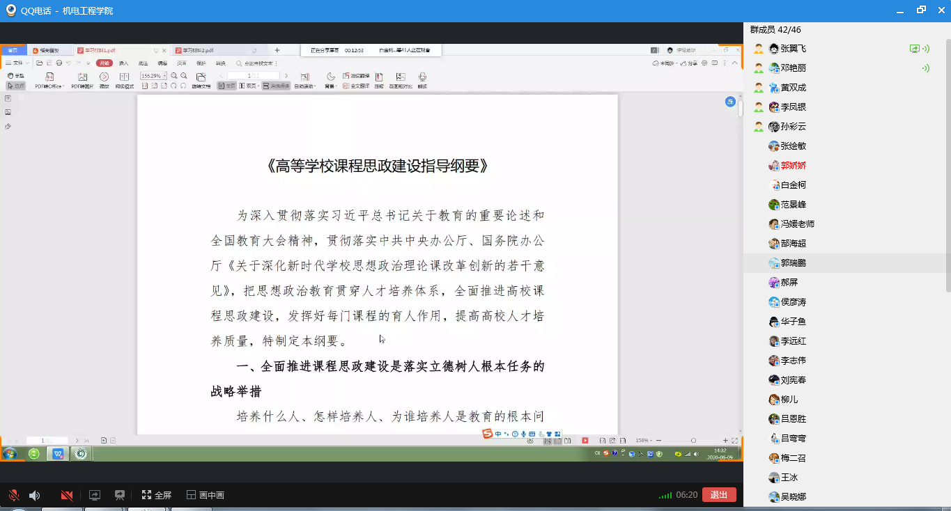 根据学校党委和宣传部的安排,beat365正版唯一官网党总支于2020年6月9日下午2:30组织全体教职工一起学习《高校课程思政建设指导纲要》和《政府工作报告》。会议由党总支副书记邓艳丽主持。