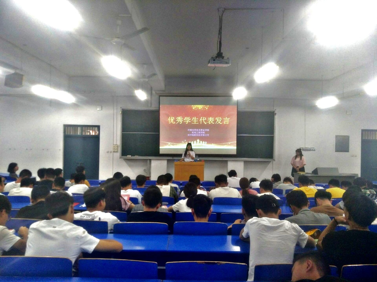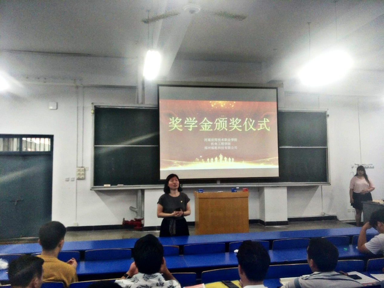 接下来,郑州烁乾有限公司负责人林晨同志进行了讲话,他希望通过企业奖学金的发放,能够进一步激发学生的学习热情,今后能在各方面能够有更大进步。