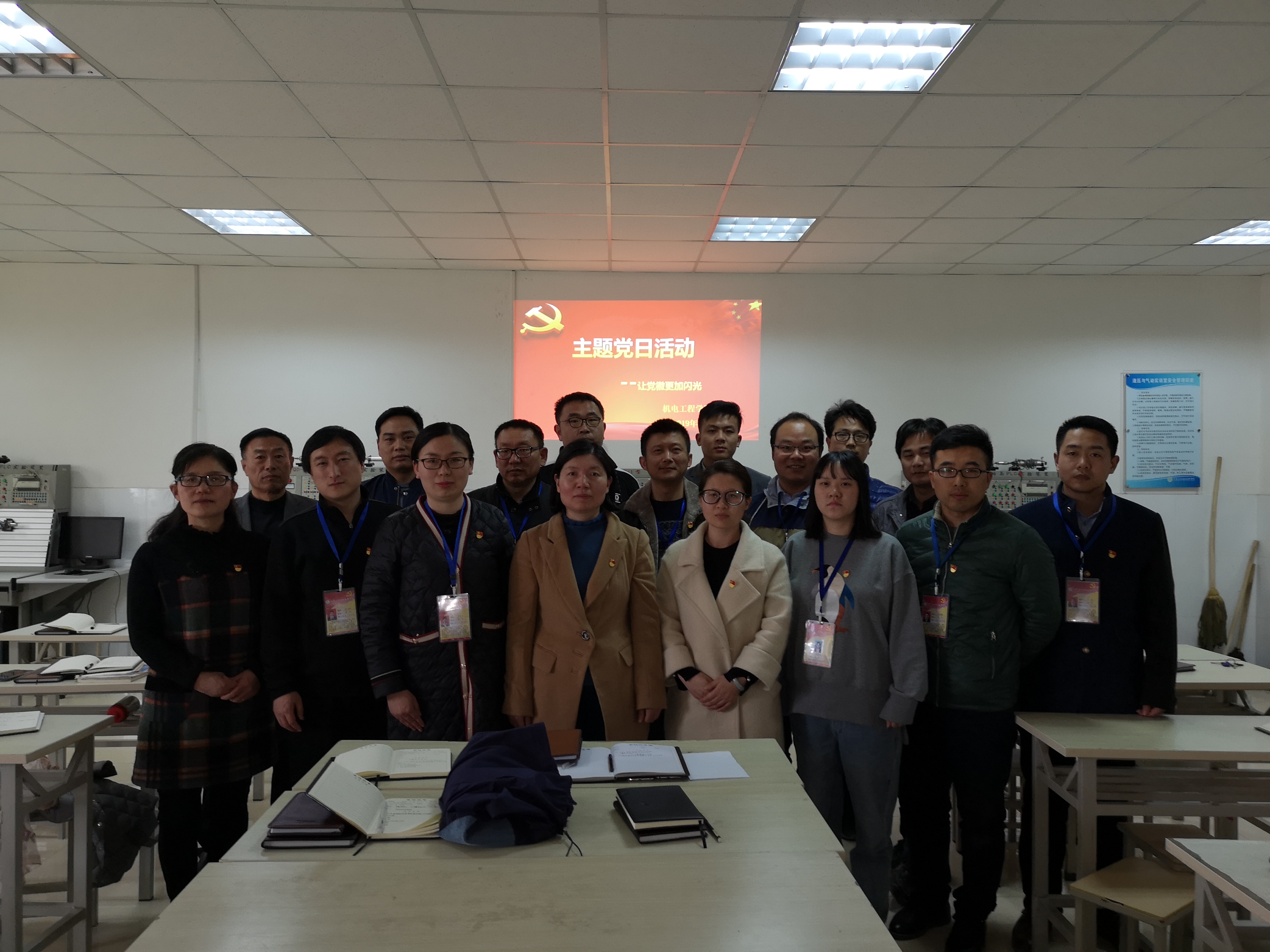 接着,全体党员按照徽章佩戴要求相互进行了检查,进一步明确了党徽的正确佩戴方法,并合影留念。