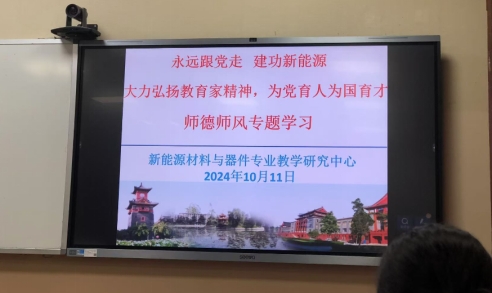 近日,新能源材料与器件专业教研中心召开“加强队伍建设,夯实育人根基”为题的专题学习会,学习习近平同志《论教育》。中心全体教师参加,并开展了交流讨论。《论教育》专题文集由中央文献出版社2024年9月出版,收入习近平同志关于教育的重要文稿47篇,其中部分文稿是首次公开发表。